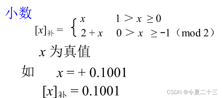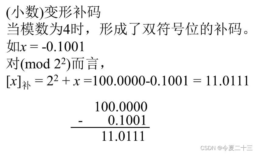 用补码表示负的小数时,因为符号位要为1,所以应该模2,也就是用2减去真值,这样得到的结果里,符号位一定为1,数值位即为真值的补数。