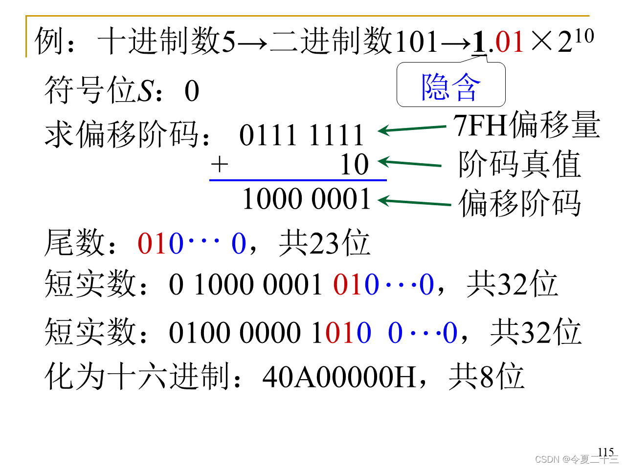 尾数:要先化为“1.xx……xx”的形式,再把最高位的“1”省略,只列出小数点后面的数,不足23位的要用0补齐