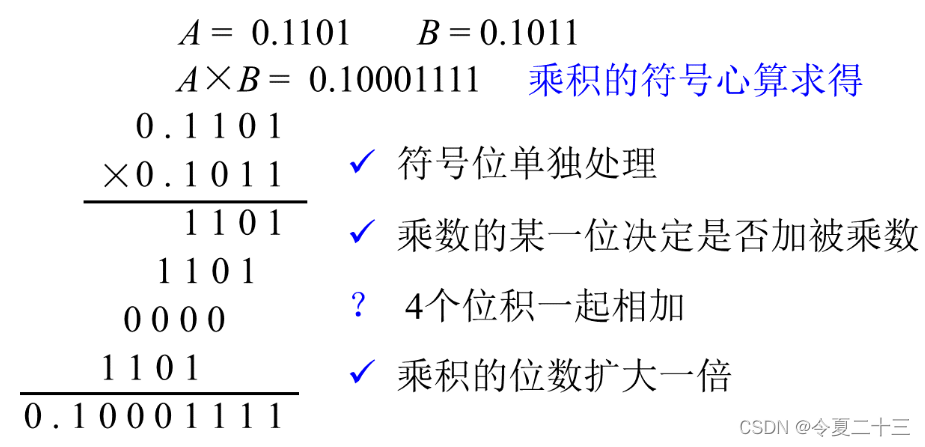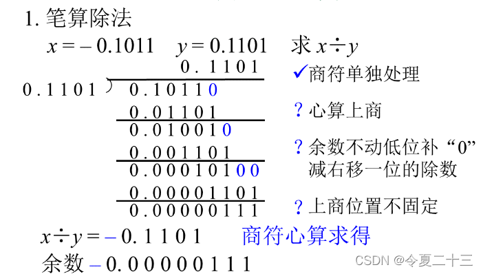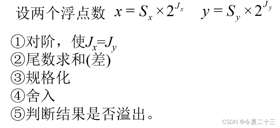 - 浮点数运算分阶码和尾数部分,而且运算结果要求规格化。