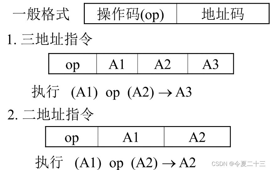 二地址指令的意思是,对两个地址所对应的数据进行操作后,结果存放在后面一个地址处。