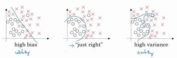 以下三张图分别为欠拟合、适度拟合和过拟合: