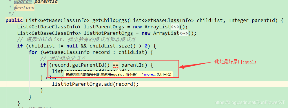 在这里,顺便说一句,当我们进行两个字符串判断相等的时候,最好使用StringUtil.equals(str1,str2)