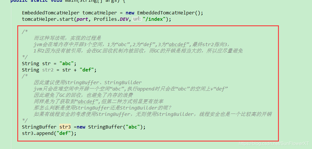 由于字符串拼接过程中会创建新的对象,所以如果要在一个循环体中进行字符串拼接,就要考虑内存问题和效率问题。