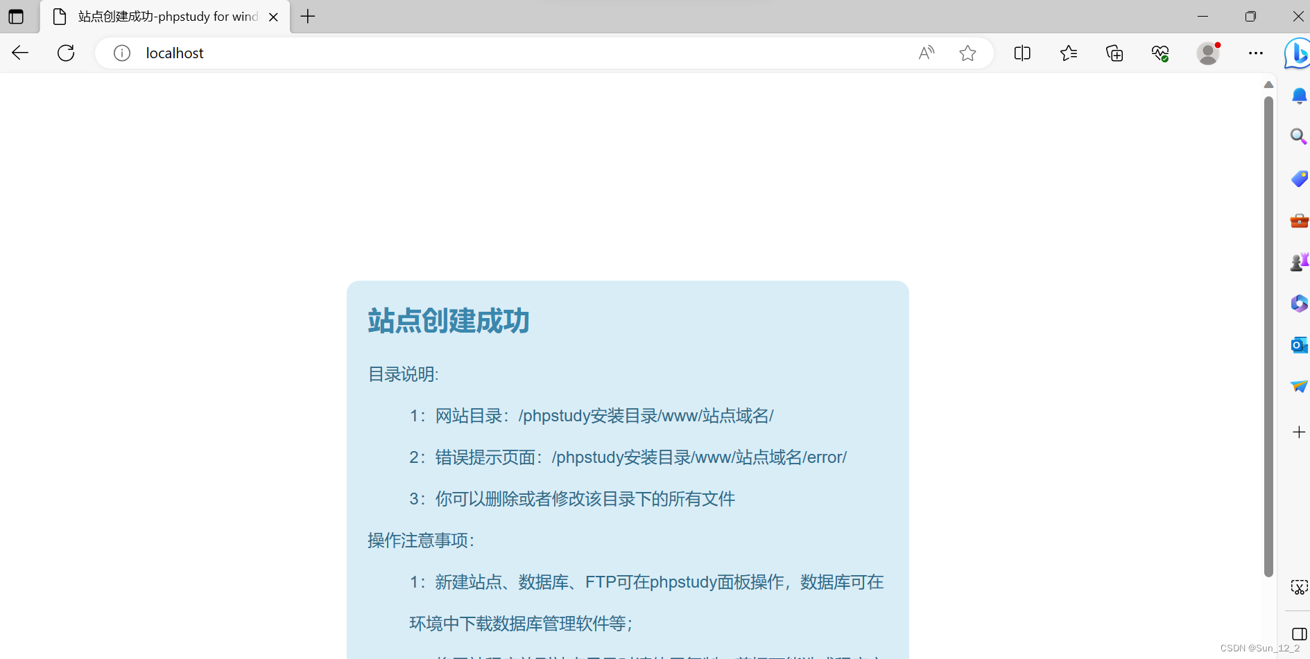 ## 启动apache,打开浏览器输入local host看站点是否创建成功