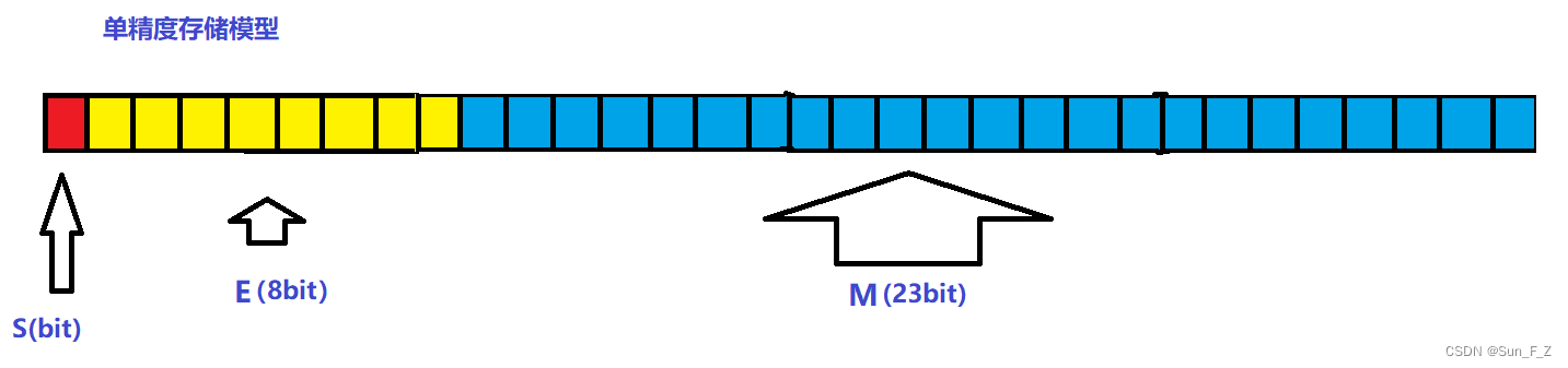 对于32位的浮点数,最高的1位是符号位s,接着的8位是指数E,剩下的23位为有效数字M。