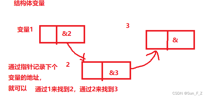 将同种结构体类型的变量,用这种链条式的结构串联起来,就叫结构体的自引用。
