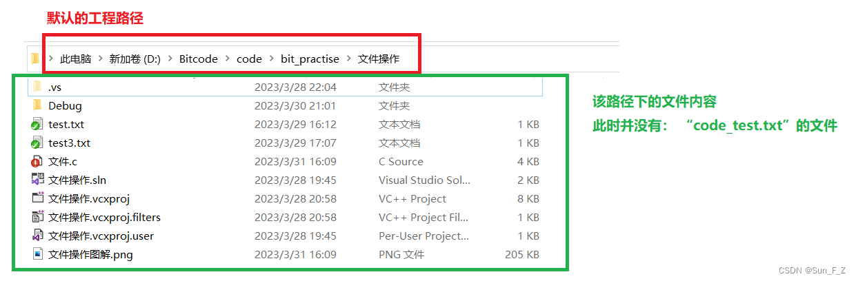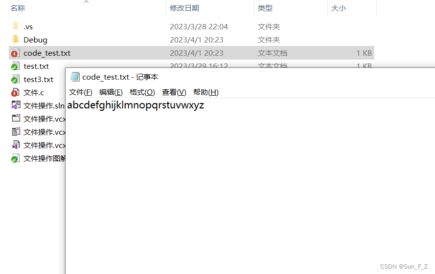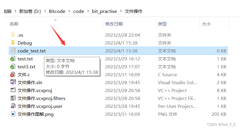 运行上述代码,将会以“w”只写的方式打开一个 “code_test.txt”的文件,如果没有此文件,将会先建立一个这样的新文件,再打开。这一切都是在该工程目录的路径下。