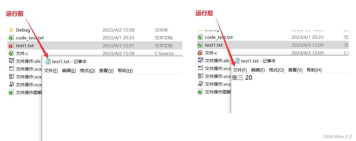 如上图所示,代码运行前,文件中是空白的,运行结束后,将信息写入到文件中去。