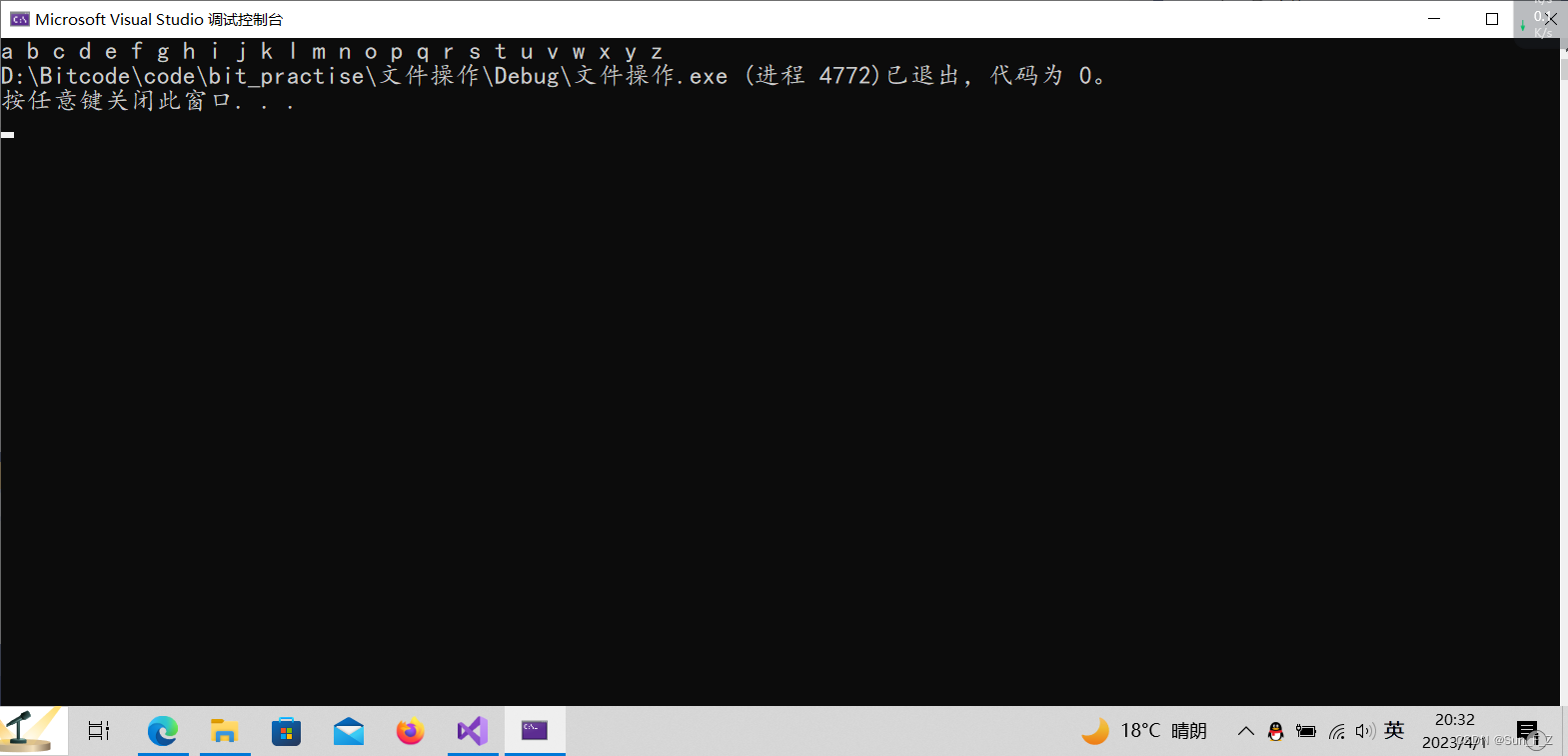 printf("%c ", fputc('a' + i, pf));//根据返回值,同时打印26英文字母