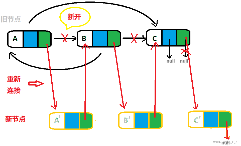 在本文中,我们将已有的链表的节点称为旧节点,复制的新链表的节点称为新节点。