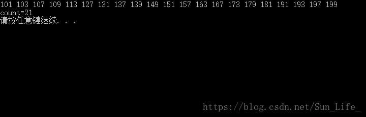 }那么现在程序执行的速度已经大大提高了,但是我们稍作思考就会发现,其实这段代码还可以做一步优化,因为大家都知道所有的偶数都不是素数,所以我们让i从101开始,每次循环时对其+2,就可以使程序减少一半的运算量: