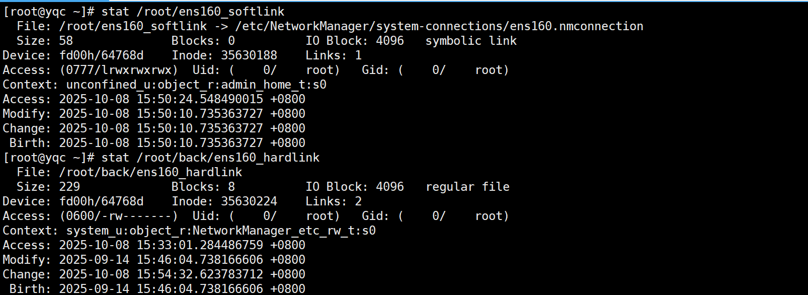 stat /root/ens160_softlink #查看软链接