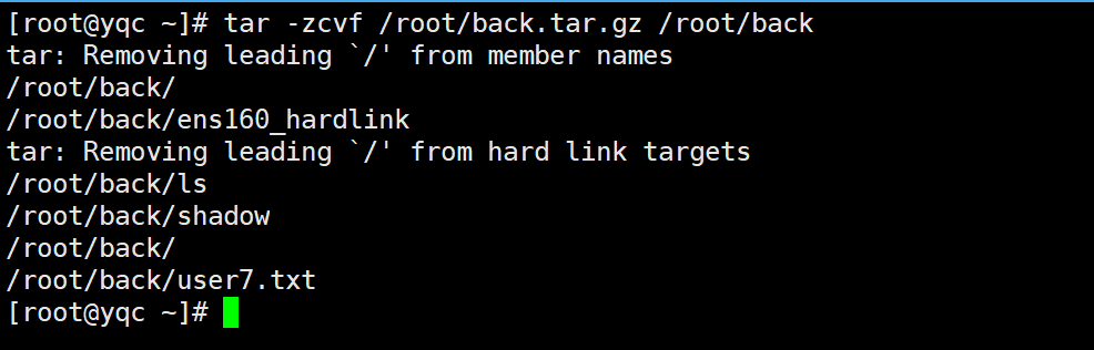 tar -zcvf /root/back.tar.gz /root/back