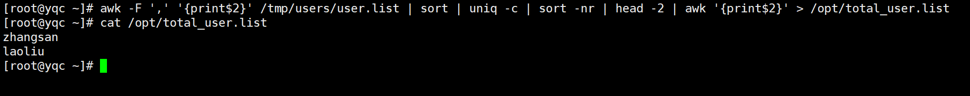 三、统计二、题中出现最多的用户,并把结果保存到/opt目录中的total_user.list文件中