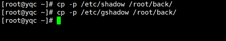 cp -p /etc/shadow /root/back/ #备份shadow