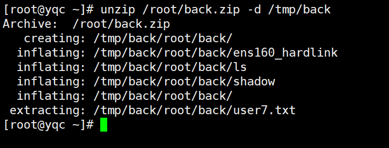 unzip /root/back.zip -d /tmp/back