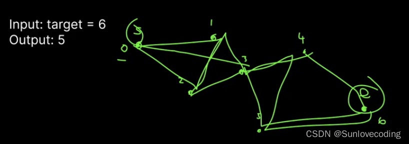 # 这道题破题的关键思路是:每个 pos 都是图中的一个点,1 2 3 4 5 ,每个点之间都可能是相连的,求点0到点target的最短路径