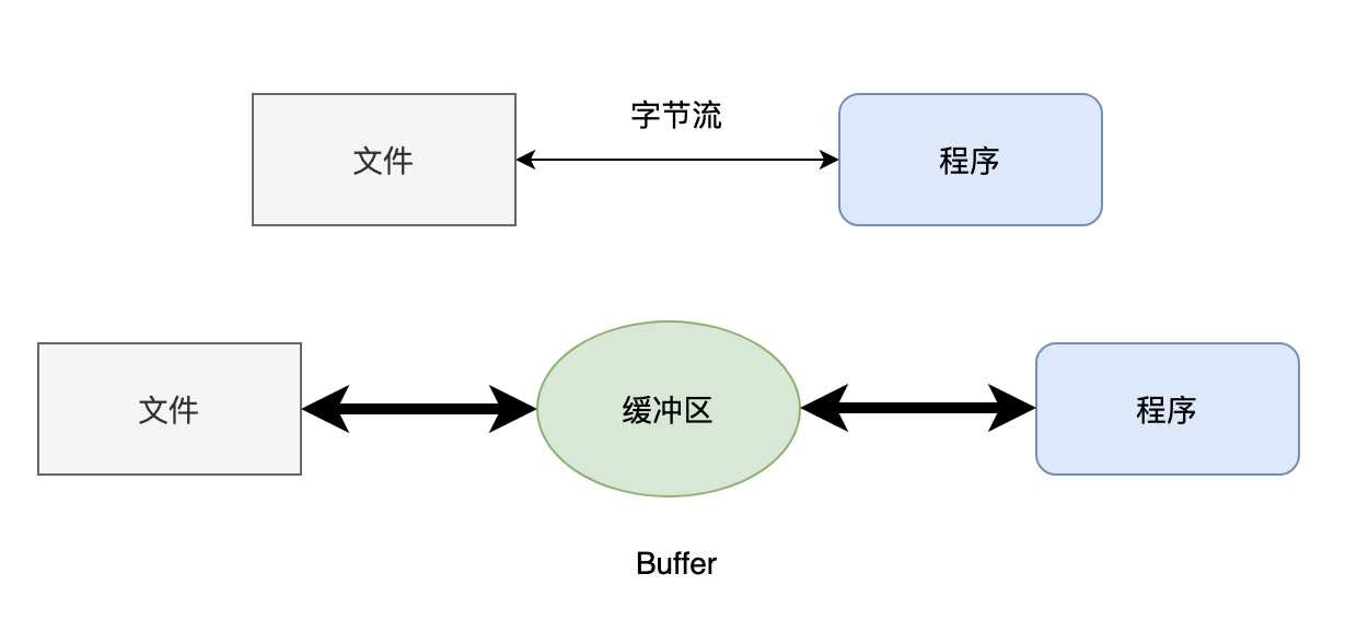 缓冲流在内存中设置了一个缓冲区,只有缓冲区存储了足够多的带操作的数据后,才会和内存或者硬盘进行交互。简单来说,就是一次多读/写点,少读/写几次,这样程序的性能就会提高。