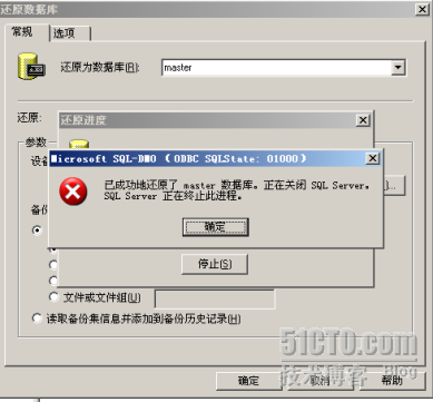 注:使用企业管理器进行还原时,还原成功后可能会出现一些连接错误提示。建议使用查询分析器来执行还原,可以避免出现错误提示。