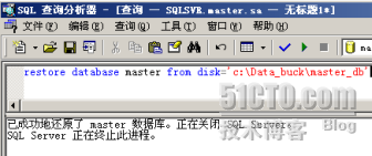 也可以通过查询分析器运行T-SQL命令执行还原: