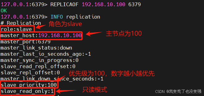 127.0.0.1:6379> REPLICAOF 192.168.10.100 6379