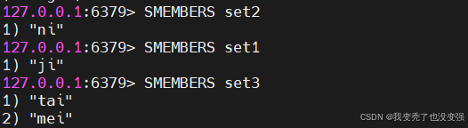 127.0.0.1:6379> SMEMBERS set3