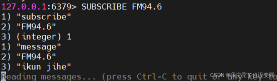 127.0.0.1:6379> SUBSCRIBE FM94.6