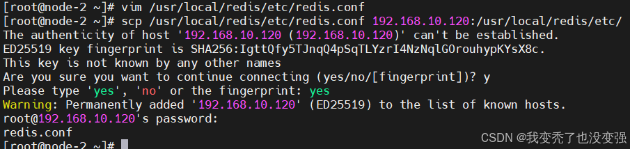 scp /usr/local/redis/etc/redis.conf 192.168.10.120:/usr/local/redis/etc/