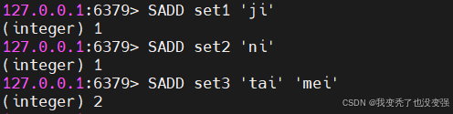 127.0.0.1:6379> SADD set3 'tai' 'mei'