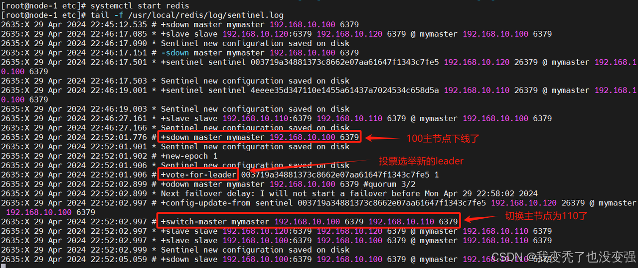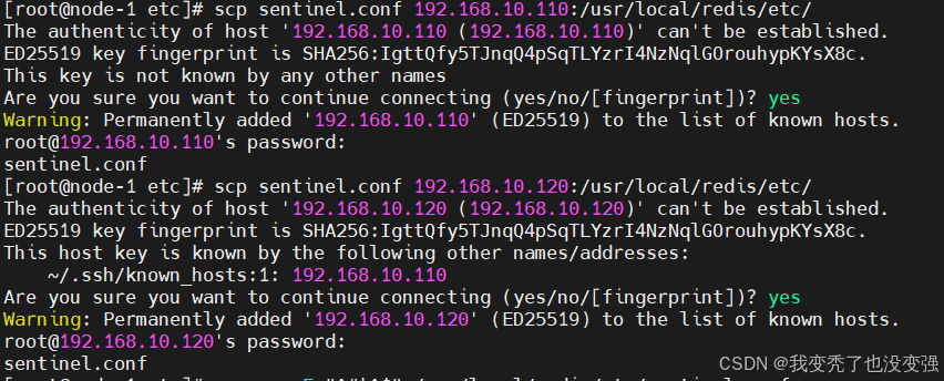 [root@node-1 etc]# scp sentinel.conf 192.168.10.110:/usr/local/redis/etc/