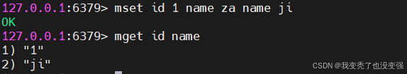 127.0.0.1:6379> mset id 1 name za name ji