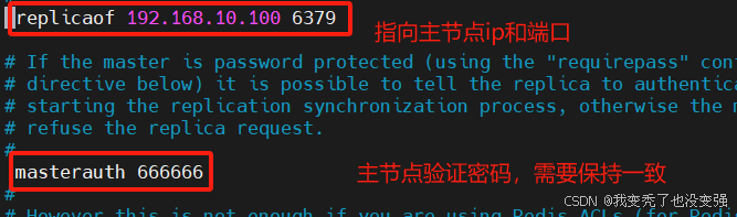 127.0.0.1:6379> CONFIG SET masterauth 666666 设置与主节点同步的认证密码(要与主接地一致)