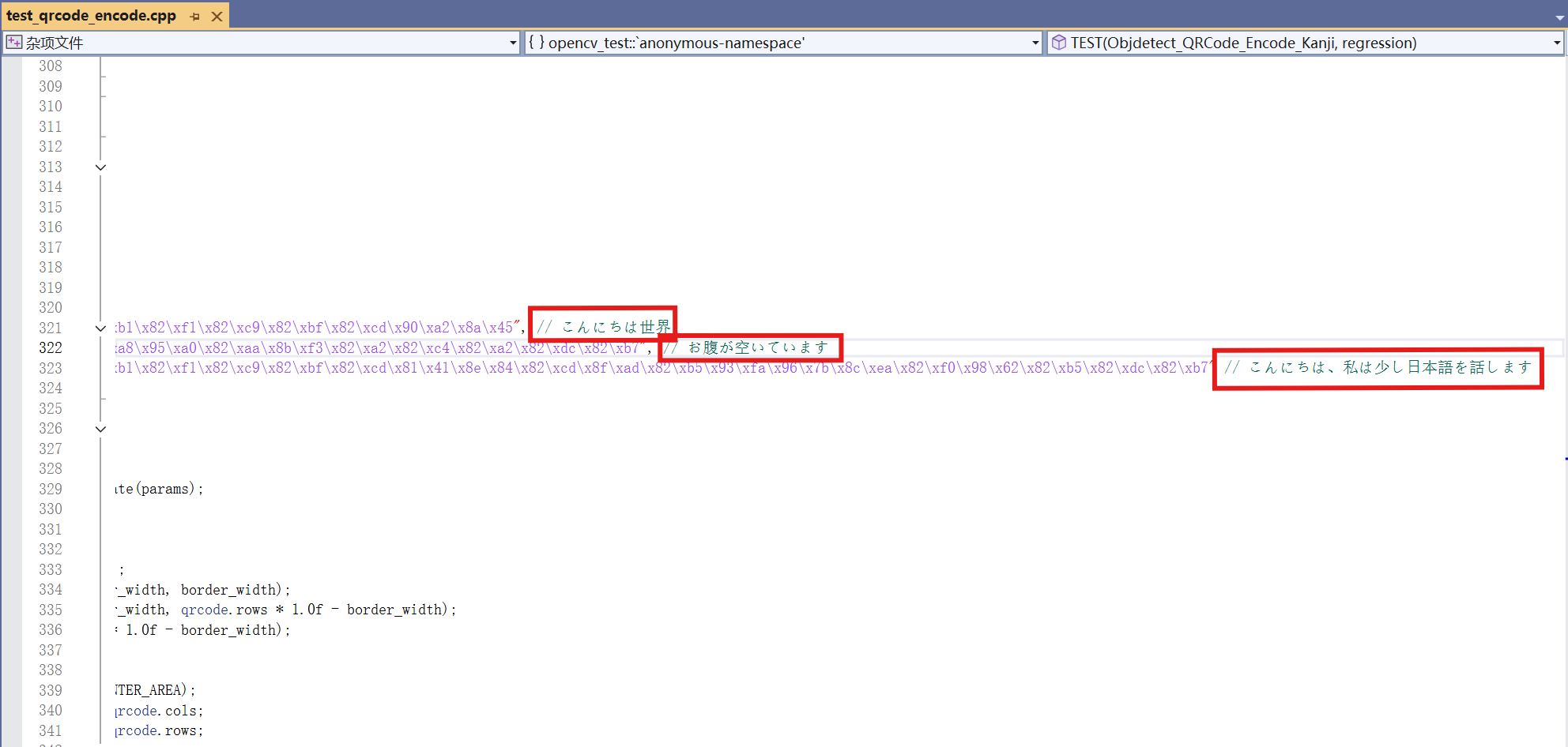 出现该错误,参考上边该博主更改test_qrcode_encode.cpp文件的编码格式并未解决问题,在评论区得到完美解决,就是删除test_qrcode_encode.cpp文件231、232、233三行的日文后,保存编译就会成功。如下图所示。