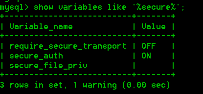 1.用show variables like '%secure%';查看文件导出的指定目录及secure_file_priv对应的value