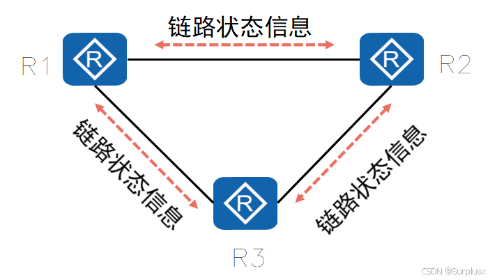 2.链路状态型协议:与距离矢量型协议不同,链路状态路由协议通告的是链路状态而不是路由表。运行链路状态型协议的路由器之间会首先建立一个协议的邻居关系,然后彼此之间开始交互LSA(链路状态通告)。每台路由器都会产生自己的LSA。路由器将自己接收到的LSA信息存储于本地的LSDB(链路状态数据库)中。路由器通过LSDB便掌握了全网的拓扑信息。最后,路由器将计算出的最优路径加载于本地的路由表中。