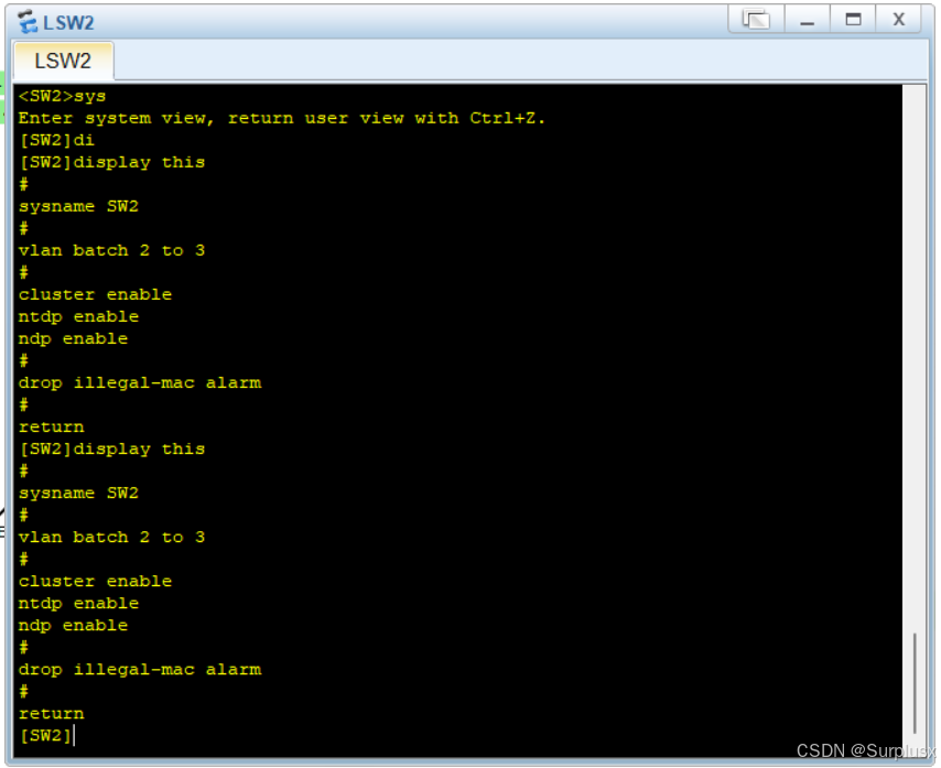 1.在两台交换机创建vlan2和vlan3对PC端进行合理划分