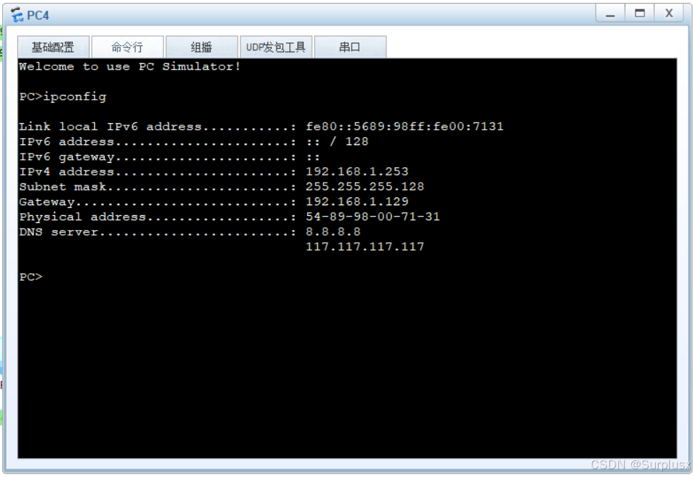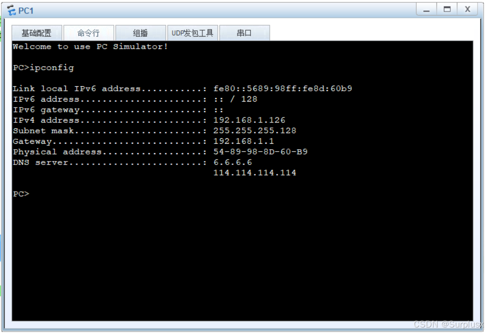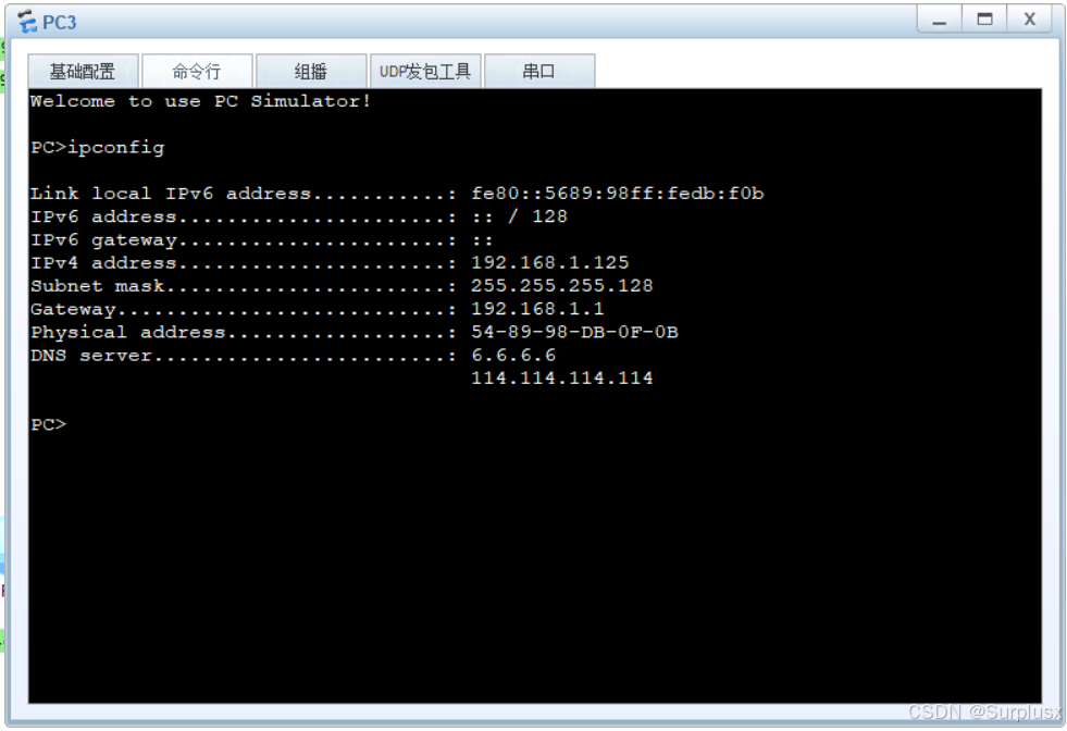 实验结果:各PC端经过DHCP获取到相应的IP地址