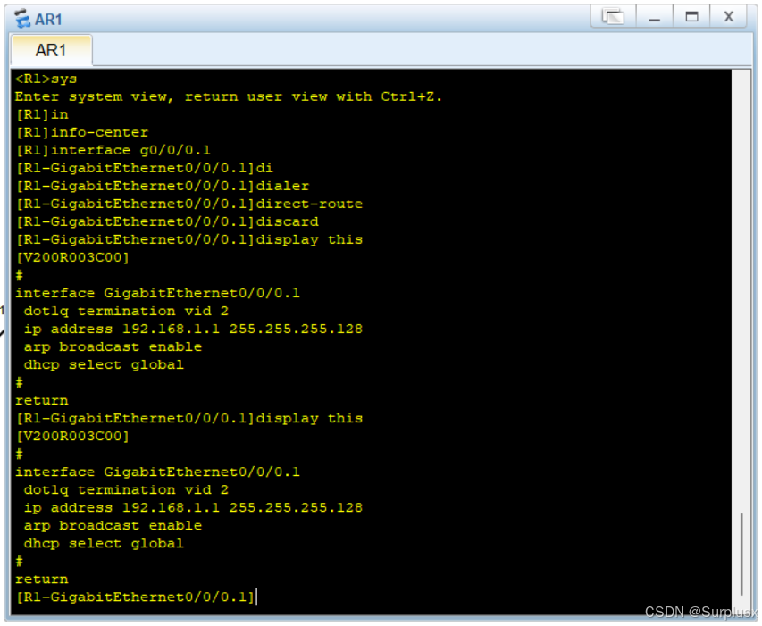 3.路由器开启子接口0.1和0.2,并开启子接口广播和ARP功能