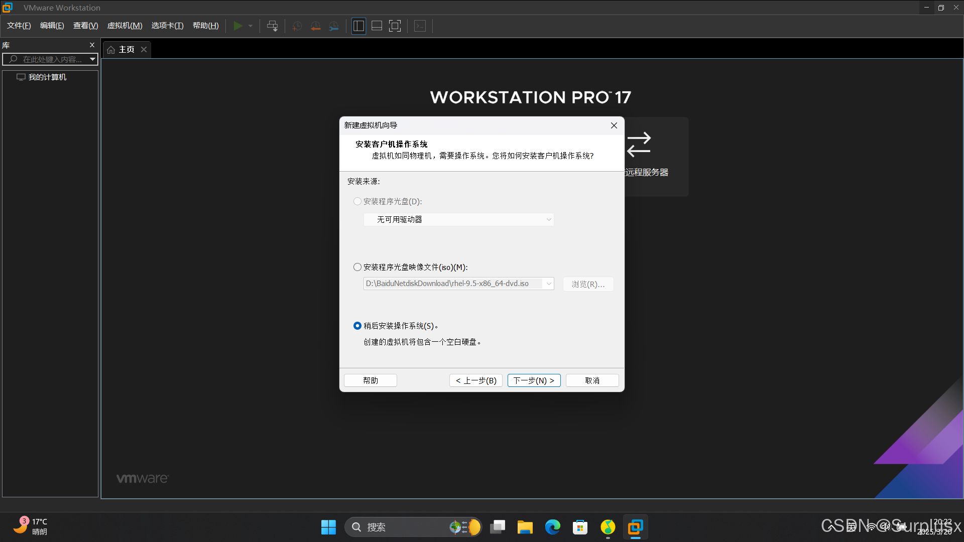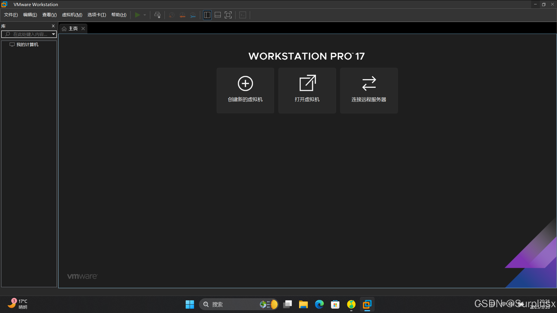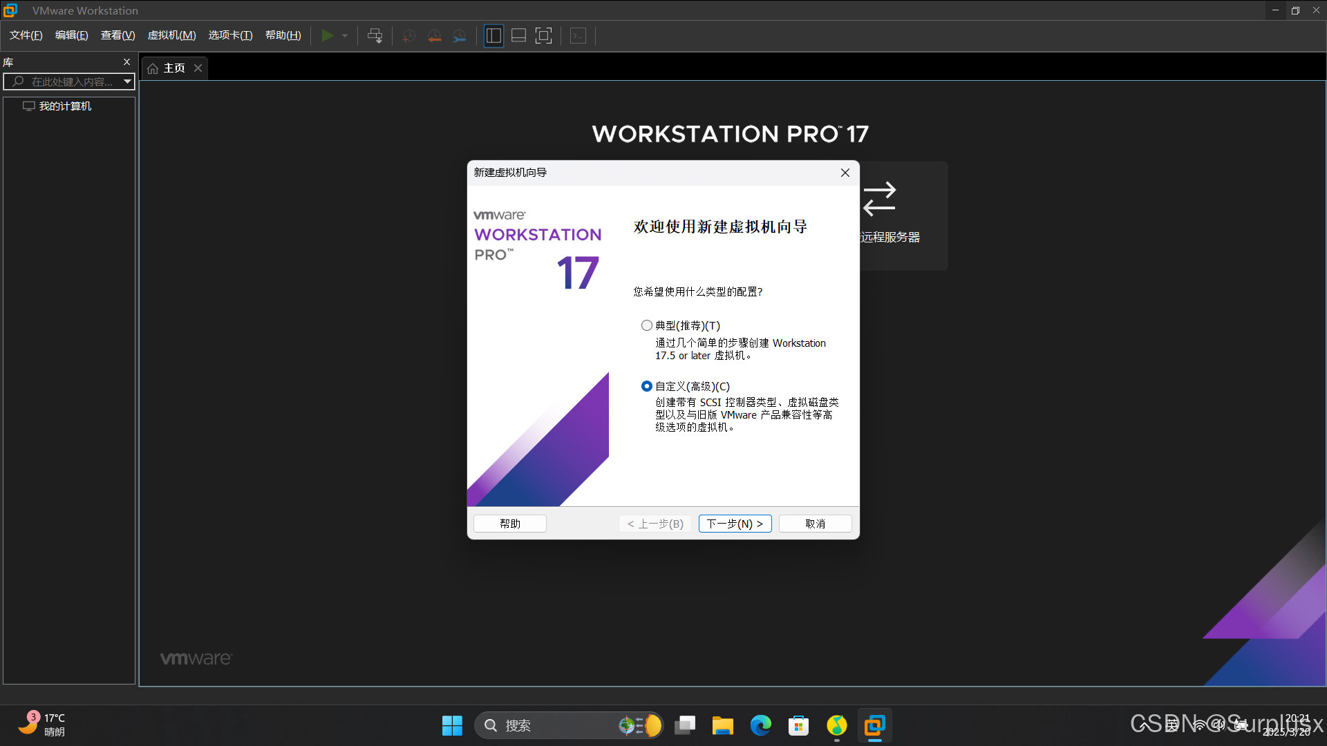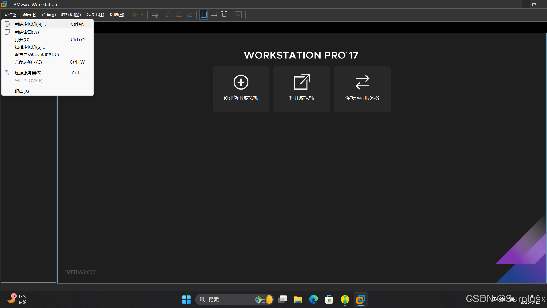 1.以管理员身份运行VMware Workstation Pro,点击“创建新的虚拟机”或点击左上角“文件”进行创建虚拟机