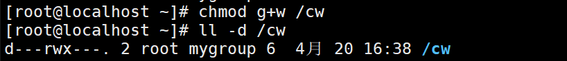 #3、新建/cw目录为财务部存储目录,只能对财务部人员可以写入,并且财务部人员所建立的文件都自动属于mygroup组中。