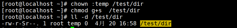 #6、在/test/dir里创建的新文件自动属于temp组。