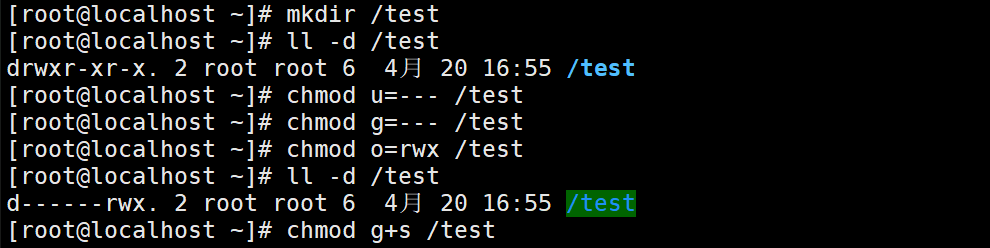 #5、设置/test目录为公共存储目录,对所有用户可以读、写、执行,但用户只能删除属于自己的文件。