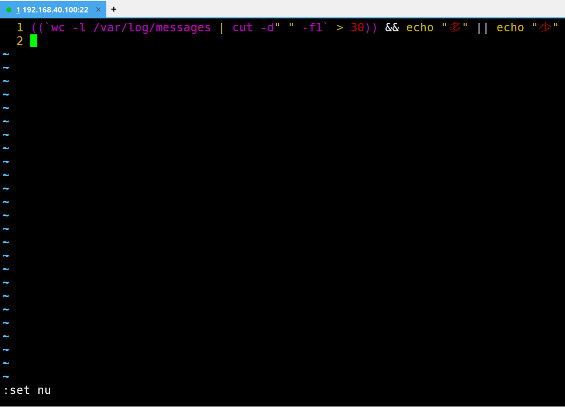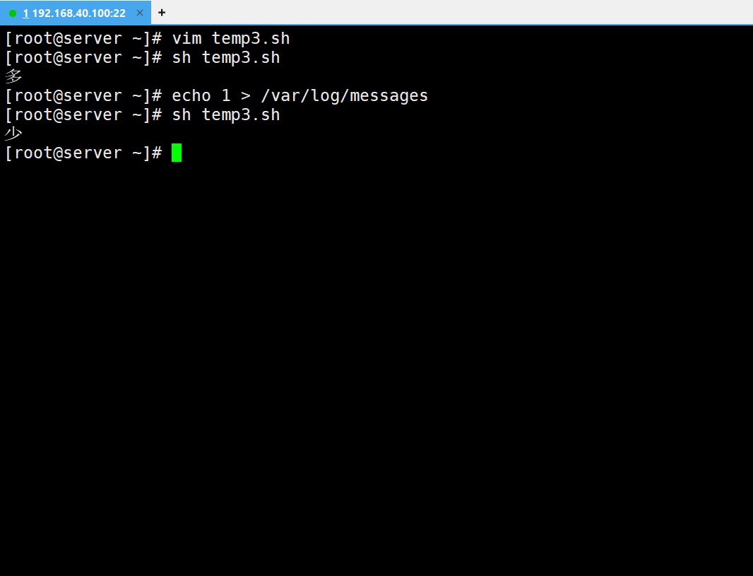 例3:编写一个脚本temp3.sh,判断/var/log/messages文件行数大于30行,则显示"多",否则显示"少"