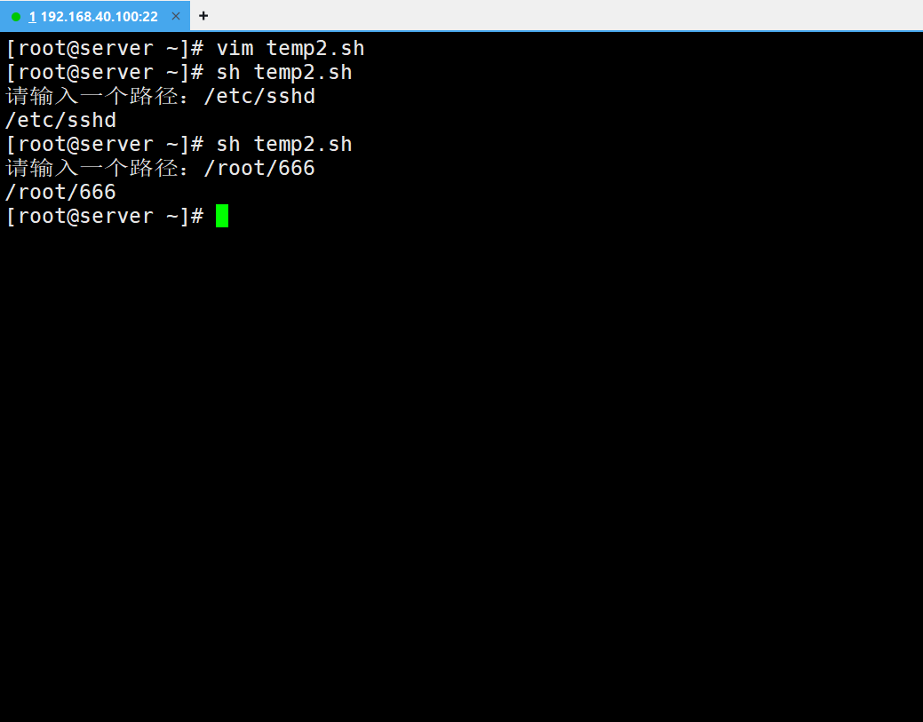 1.与例1同理,新建一个以.sh结尾的脚本temp2.sh,命令:vim temp2.sh