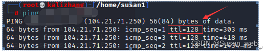 5. 既然是要拿服务器的用户名和密码,首先要判断是window服务器还是Linux服务器,采用的方式是通过TTL值来判断,Linux系统的TTL值为64或者255,Windows NT/2000/XP系统的TTL值为128,所以我判断为Window系统,如下: