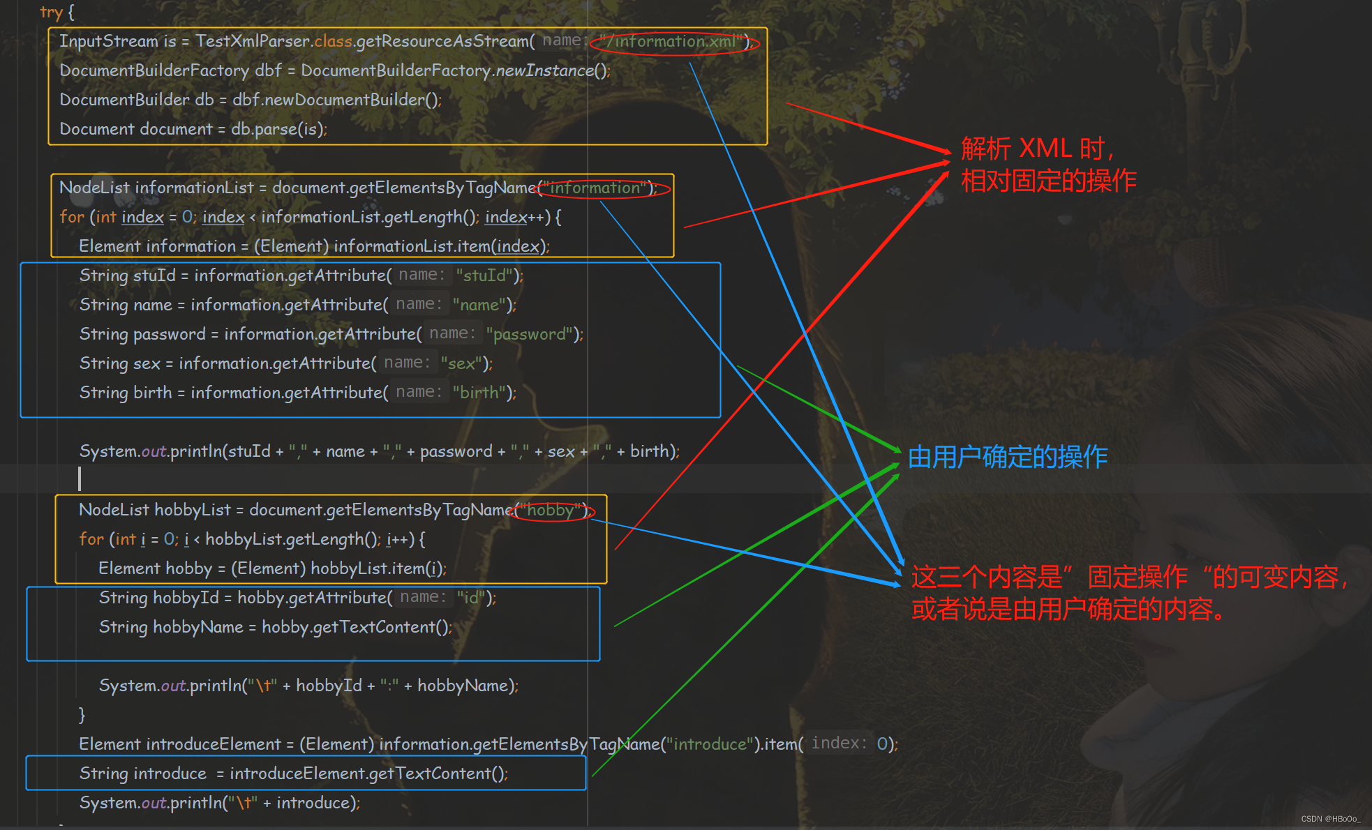 //根据 hobby,解析器属性和内容;