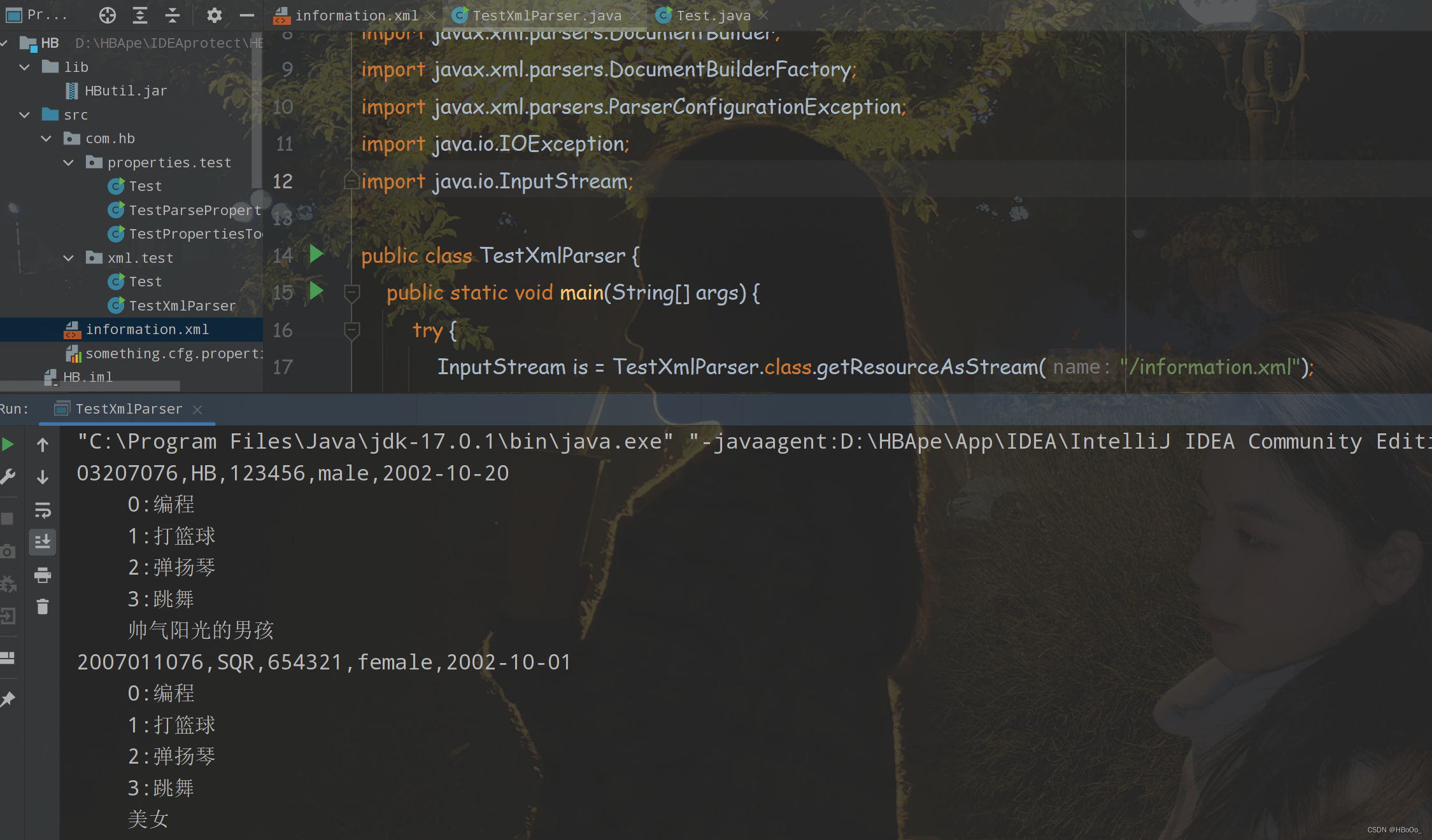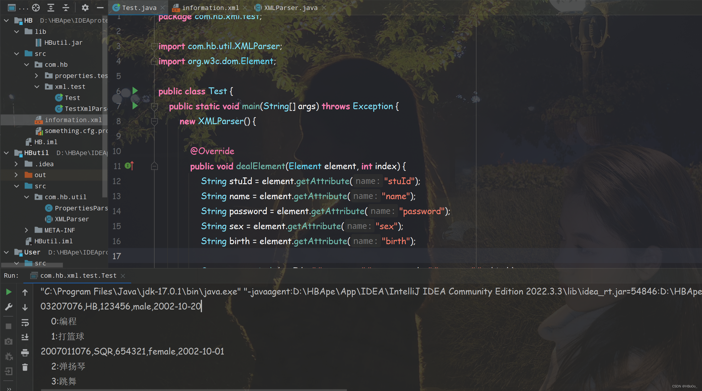 <information stuId="03207076" name="HB" password="123456" sex="male" birth="2002-10-20">