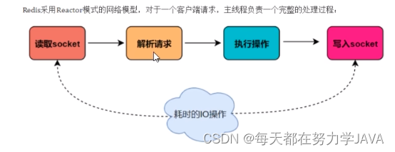 Redis的单线程主要是指Redis的网络IO和键值对读写是由一个线程来完成的,Redis在处理客户端的请求时包括获取(socket 读)、解析、执行、内容返回(socket 写)等都由于个顺序串行的主线程处理,这就是所谓的“单线程”。这也是Redis对外提供键值存储服务的主要流程。