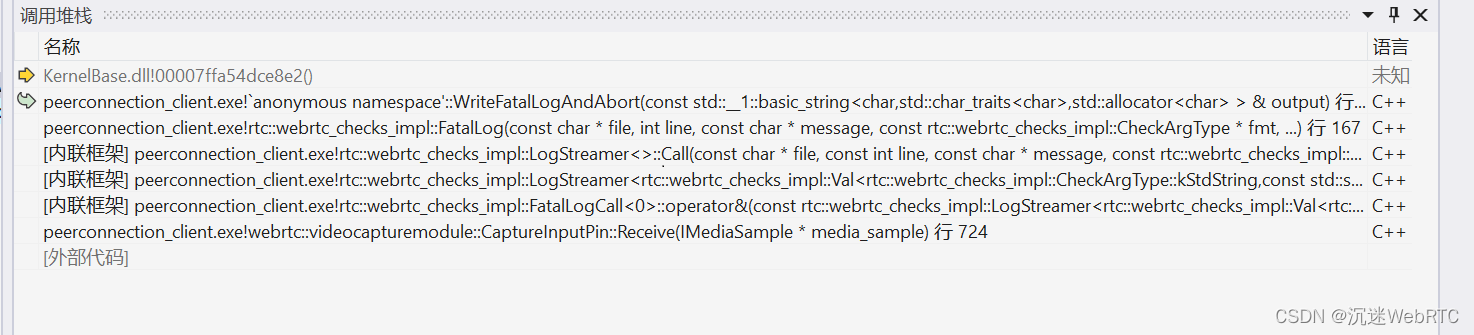 我们可以看到报错信息在webrtc\src\modules\video_capture\windows\sink_filter_ds.cc内