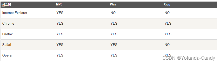 上面这种写法,浏览器会匹配audio标签中的source,如果支持就播放,如果不支持往下匹配,直到没有匹配的格式,就提示文本